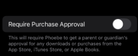 - Turn Off Ask to Buy: You will see the Ask to Buy option. Tap on it and then toggle the switch next to 'Require Purchase Approval' off (so it isn't green). This will disable the "Ask to Buy" feature for that family member, allowing them to make purchases without needing your approval. This might take a few minutes before it works. After the book or App has been downloaded, this can be turned back on. Recommend this be done at home, where both the organizer and student are together.
